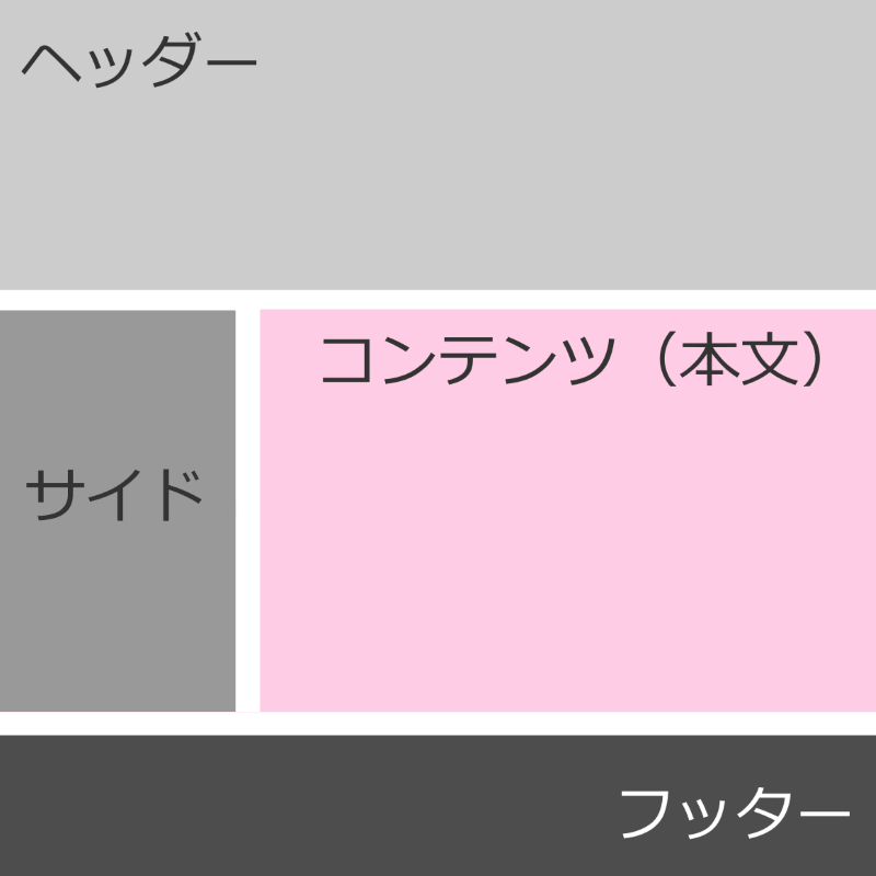基準レイアウトはヘッダー・コンテンツ(本文)・サイド・フッターの4つの領域の組み合わせとなります。