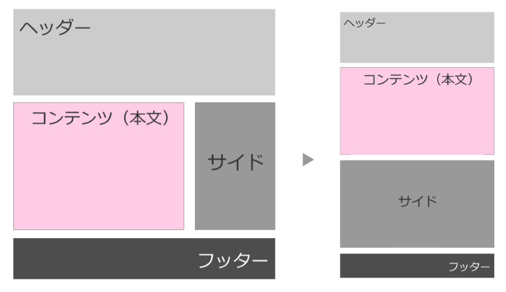 - 基準レイアウトは、パソコンの場合、コンテンツとサイドが並ぶ2カラムです。